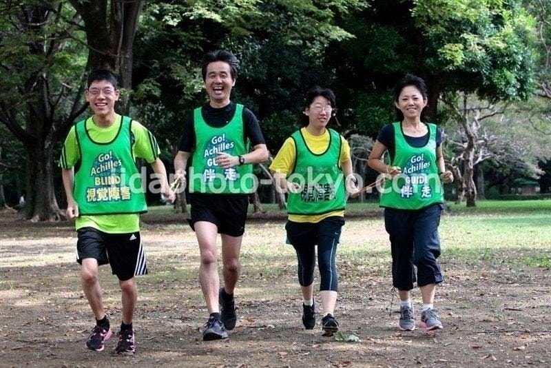 Photos taken by Teruaki Iida for a Japanese book depicting courageous activities of running of and with the handicapped.
